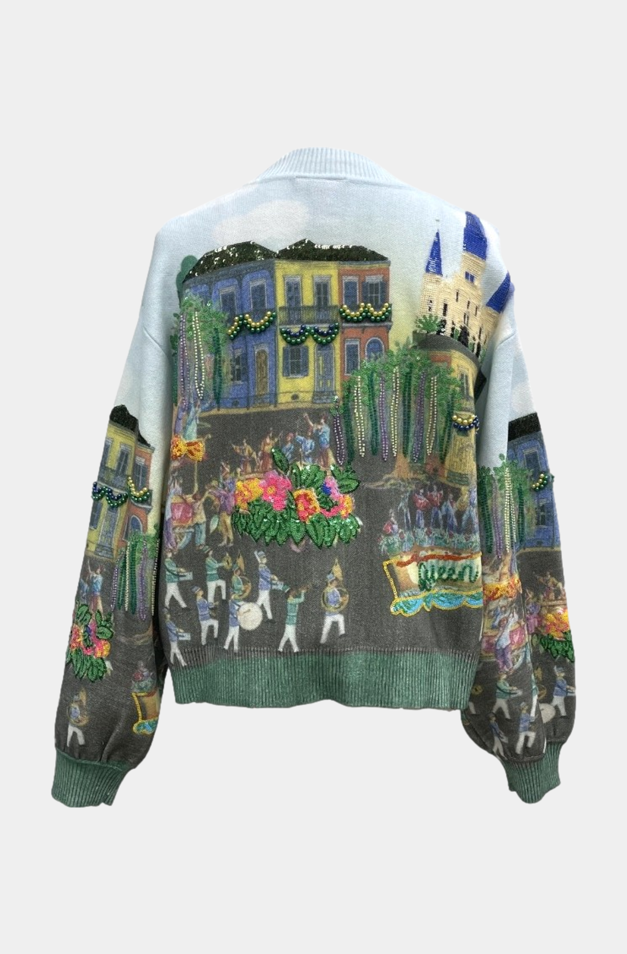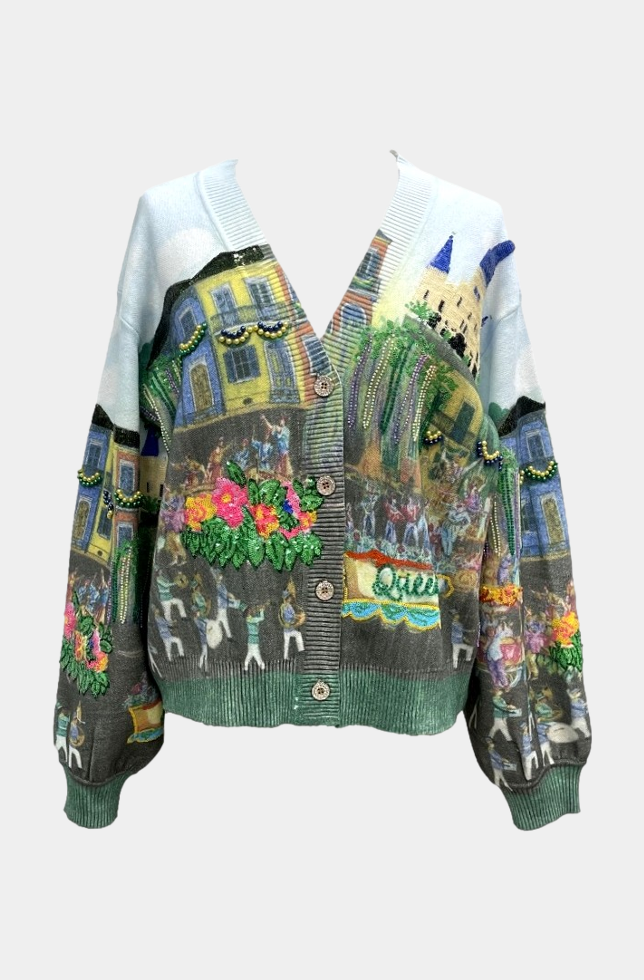 Queen of Sparkles Mardi Gras Parade Scene Button Up Cardigan