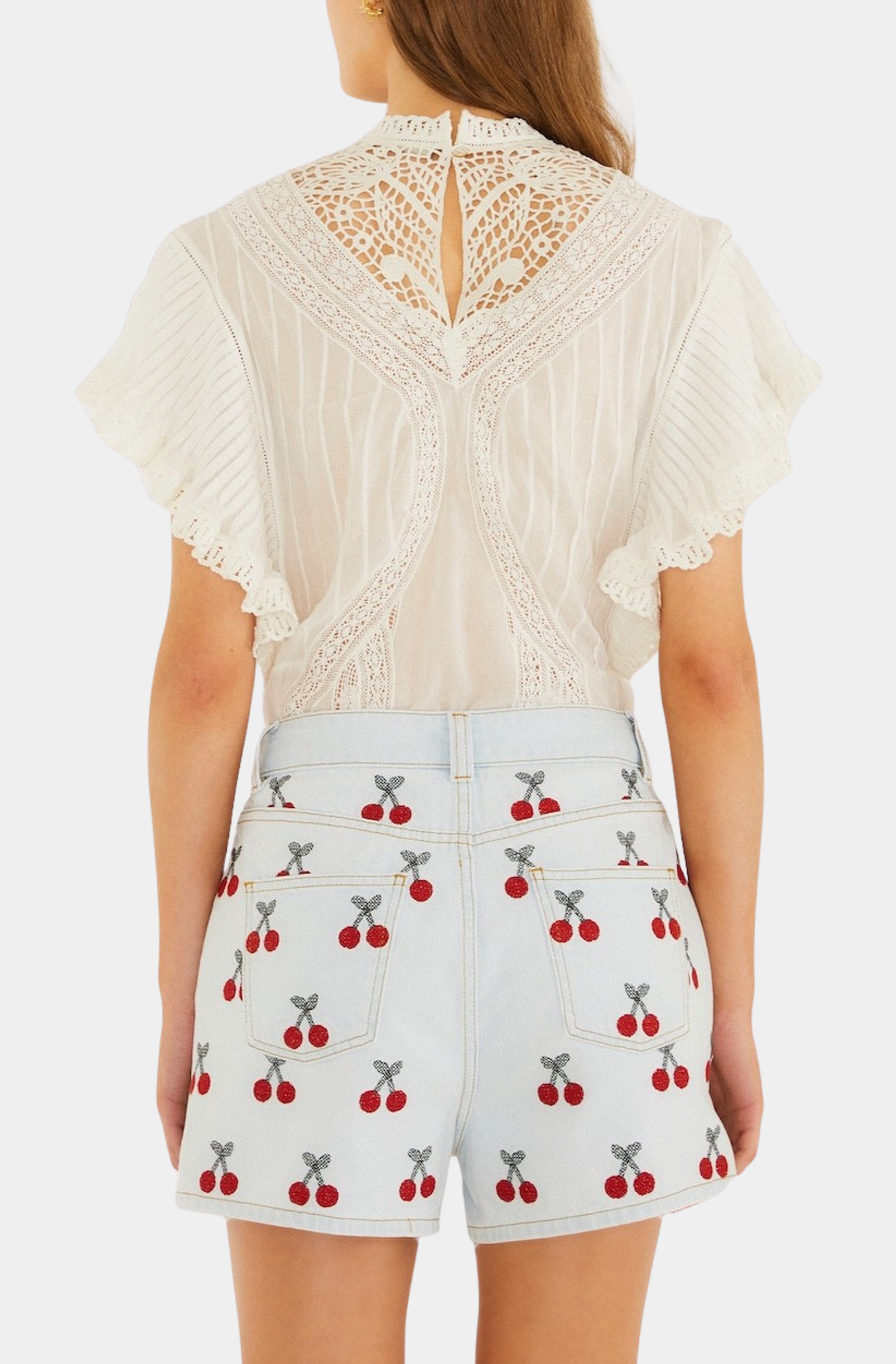 Embroidered Cherry Denim Shorts