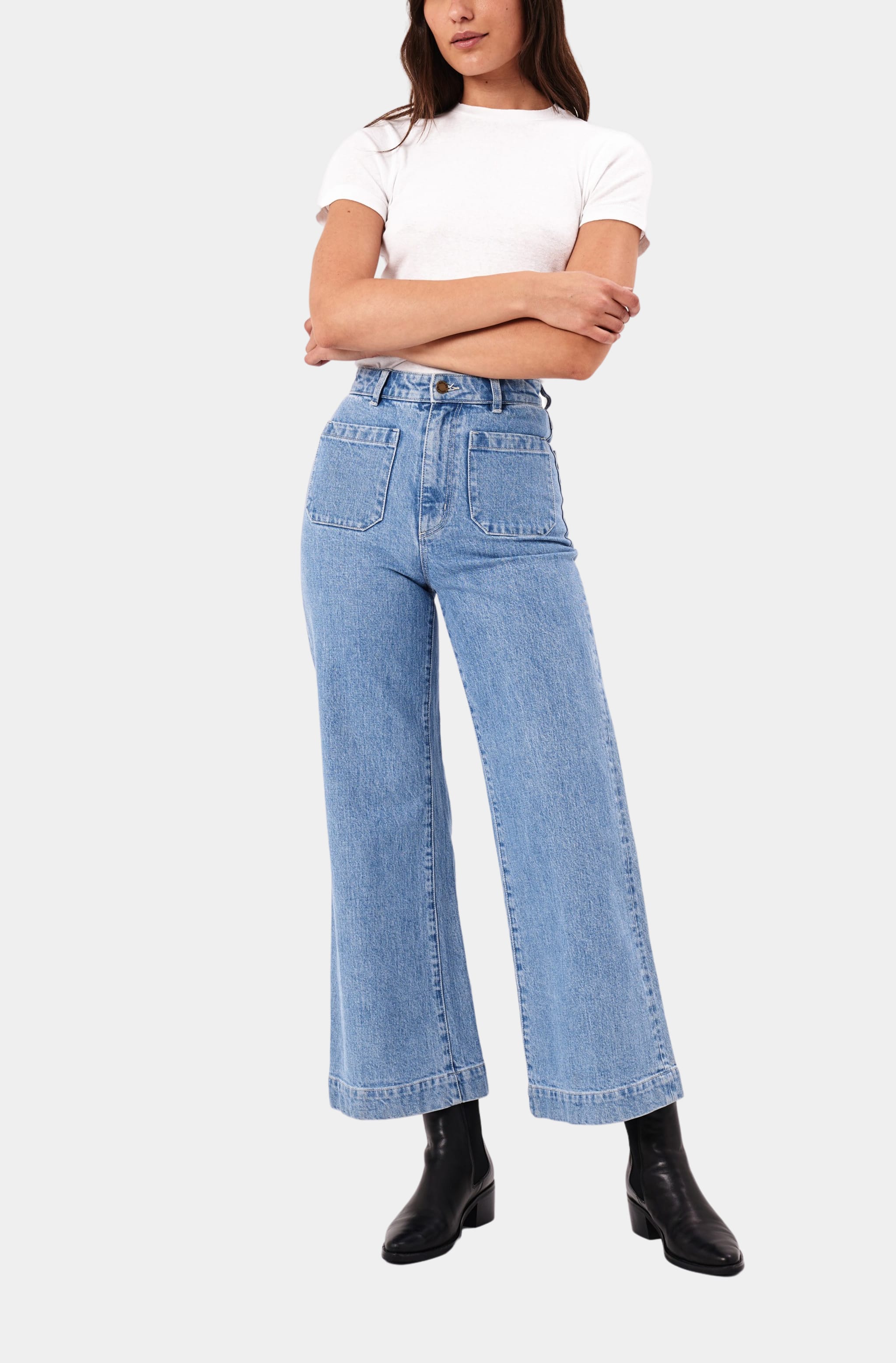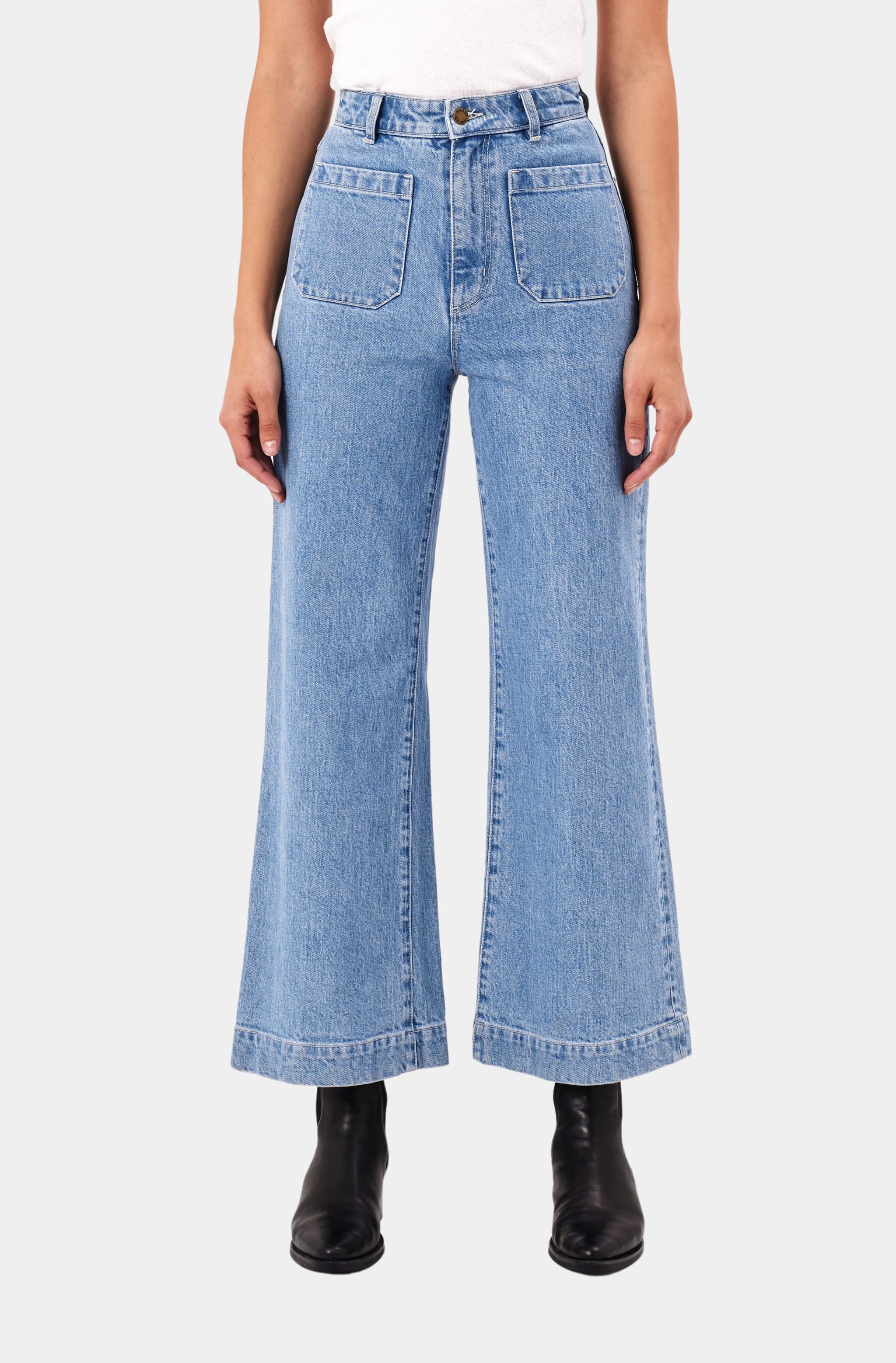 Rosie High-Rise Wide Leg Ankle Cuff Covered Button Fly