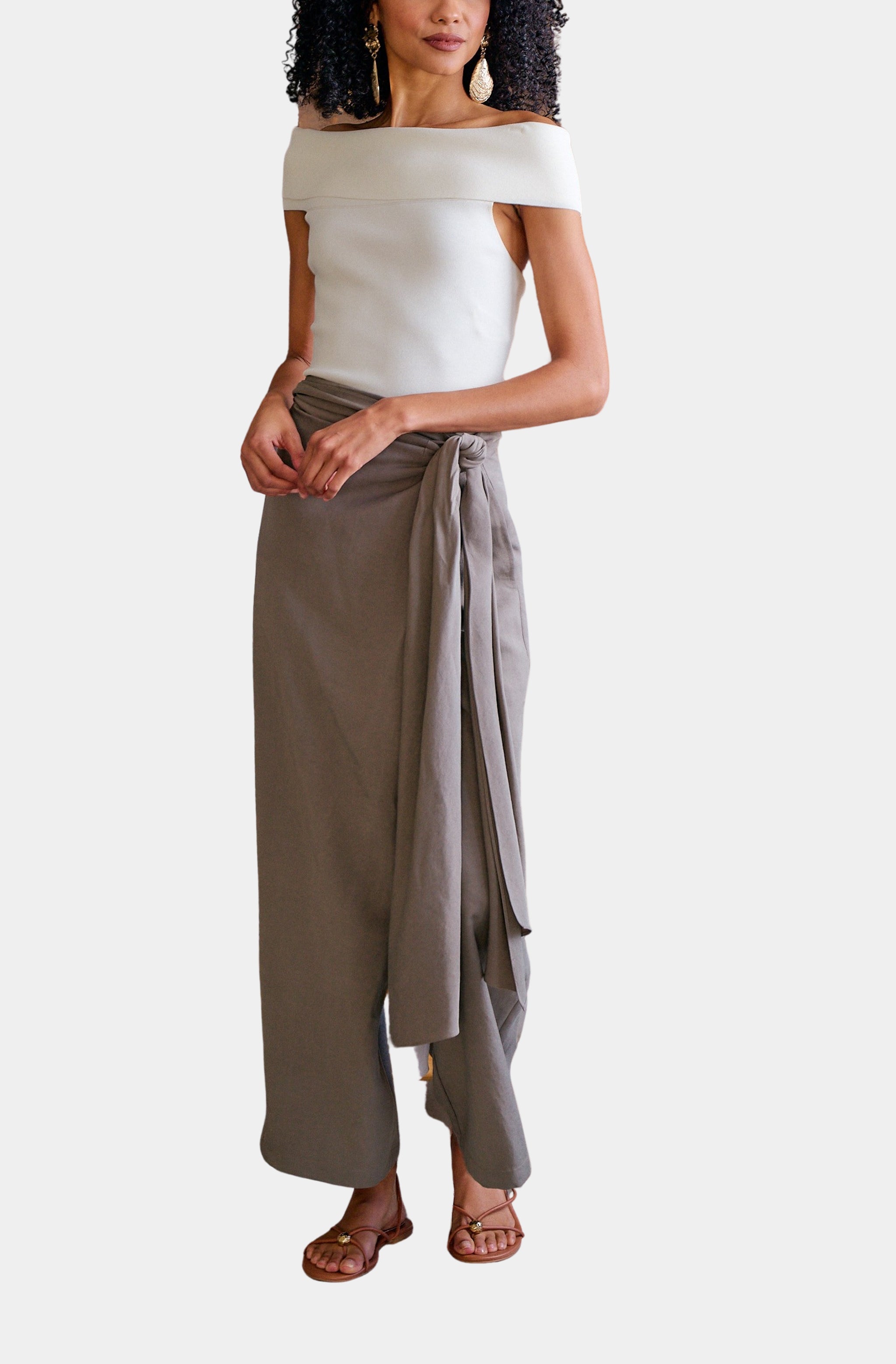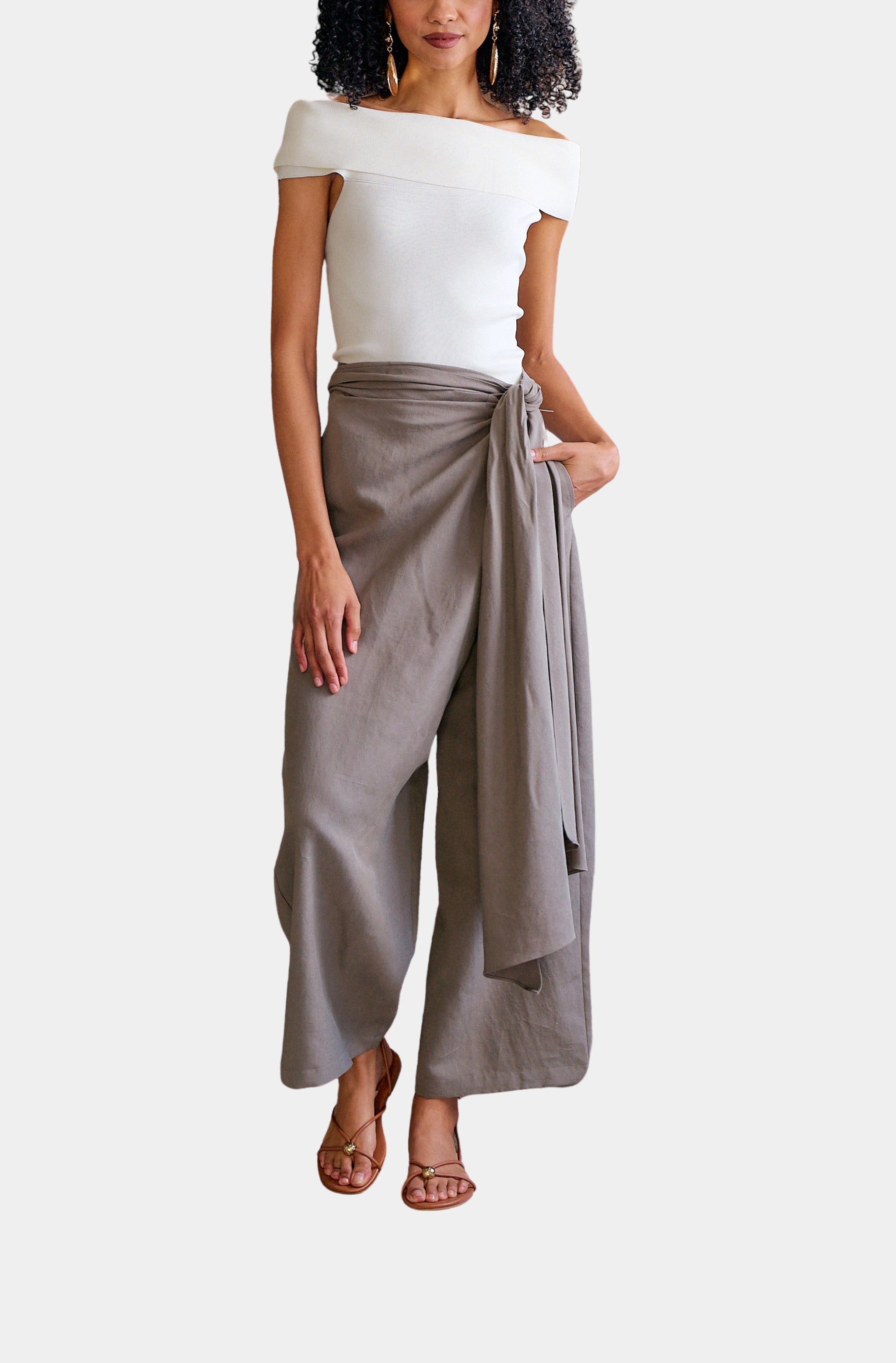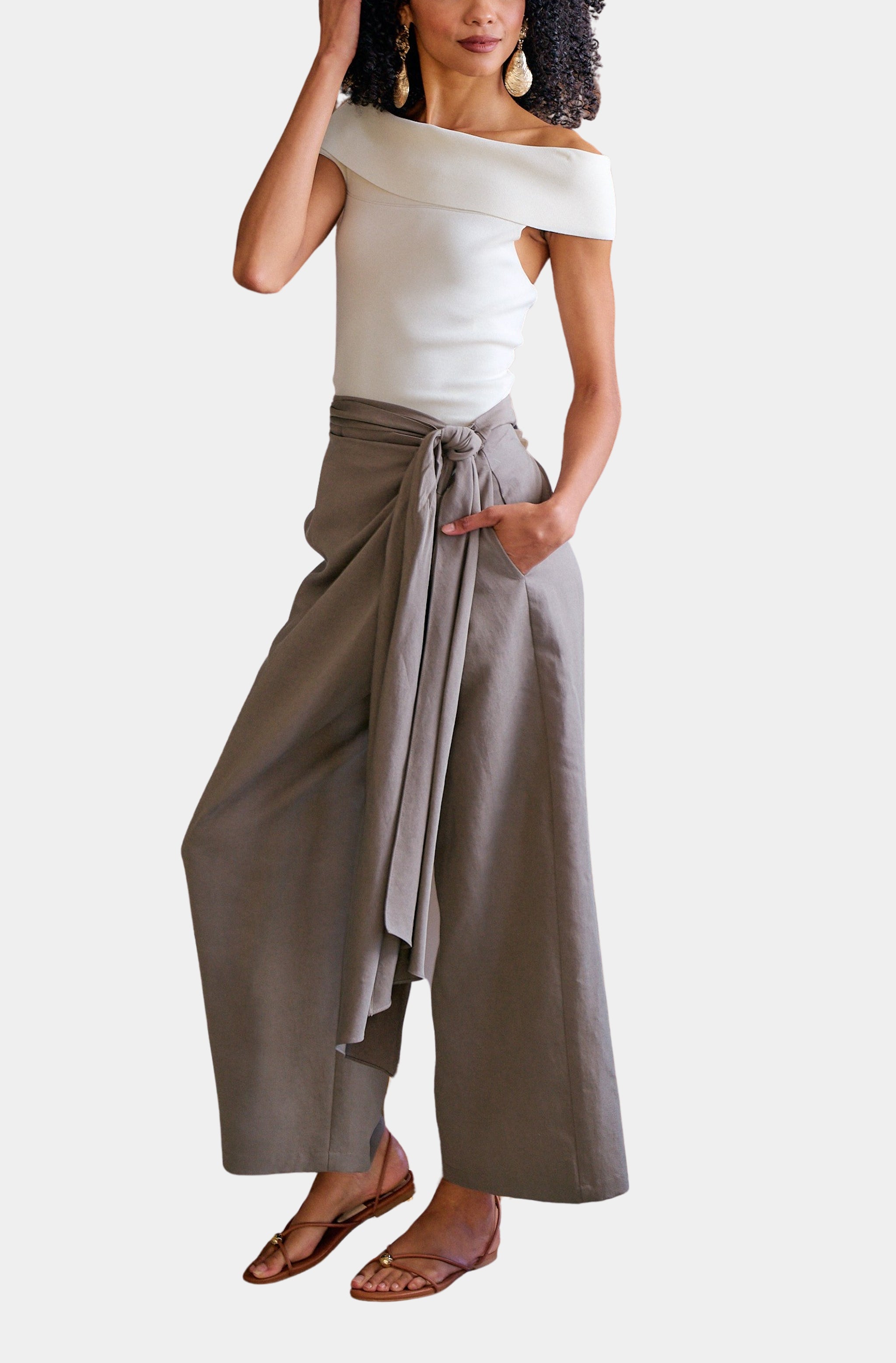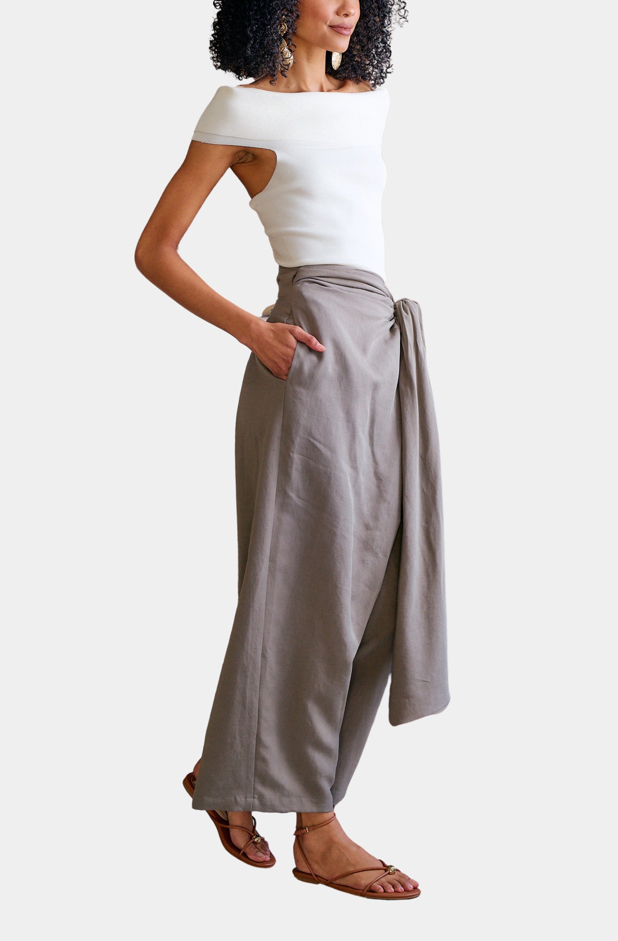 Ruffle Waist Wide Leg Pant