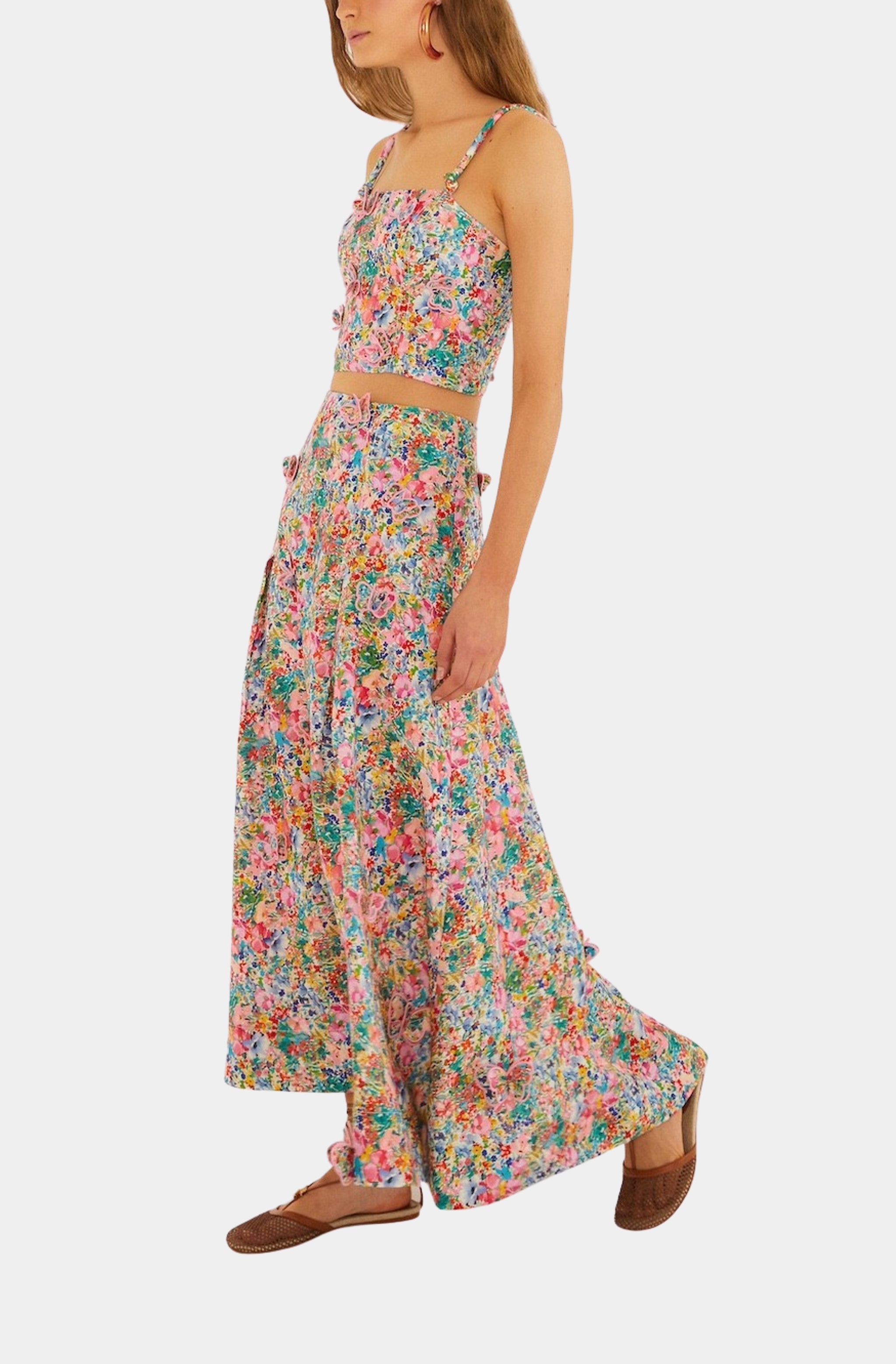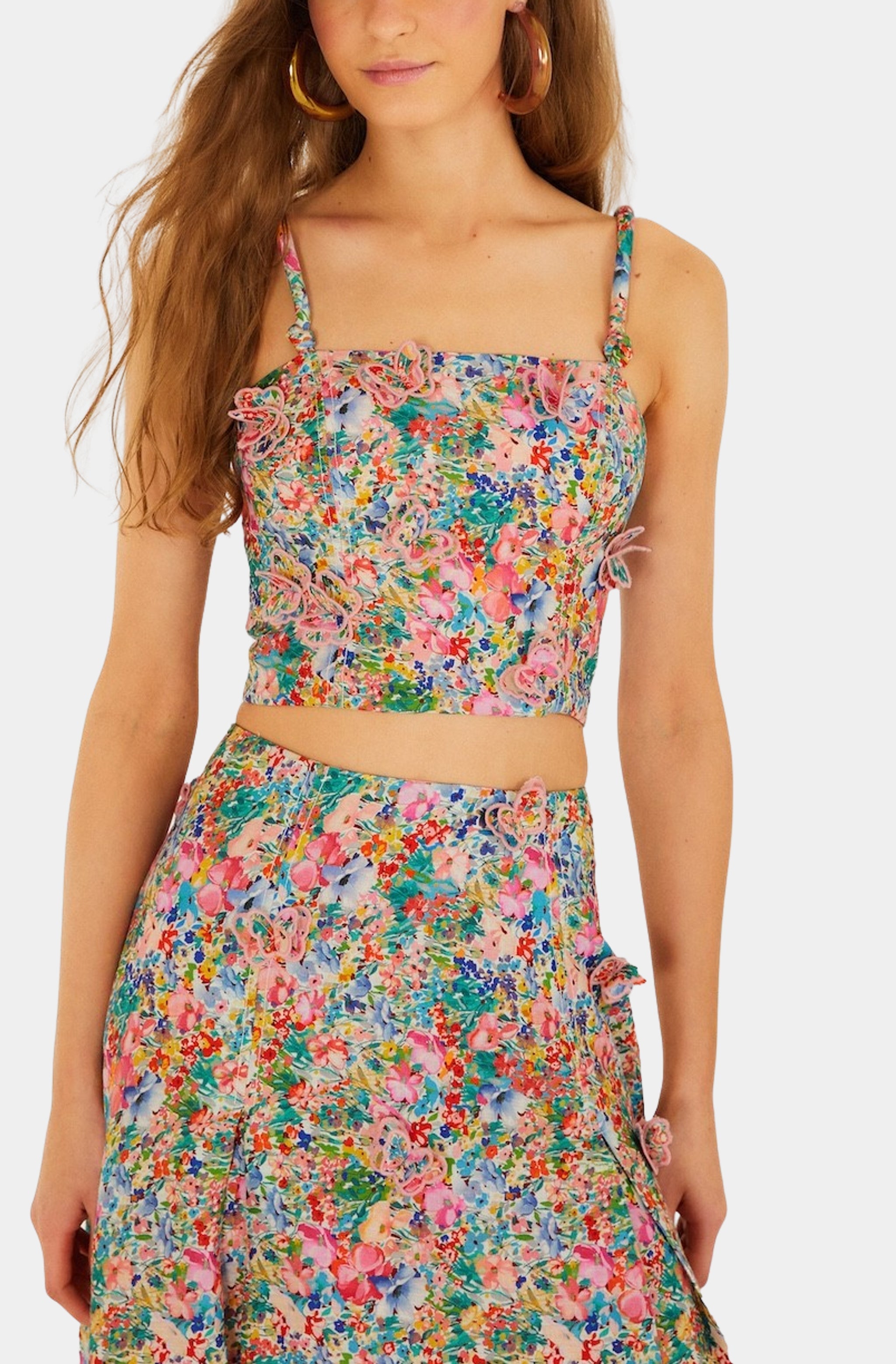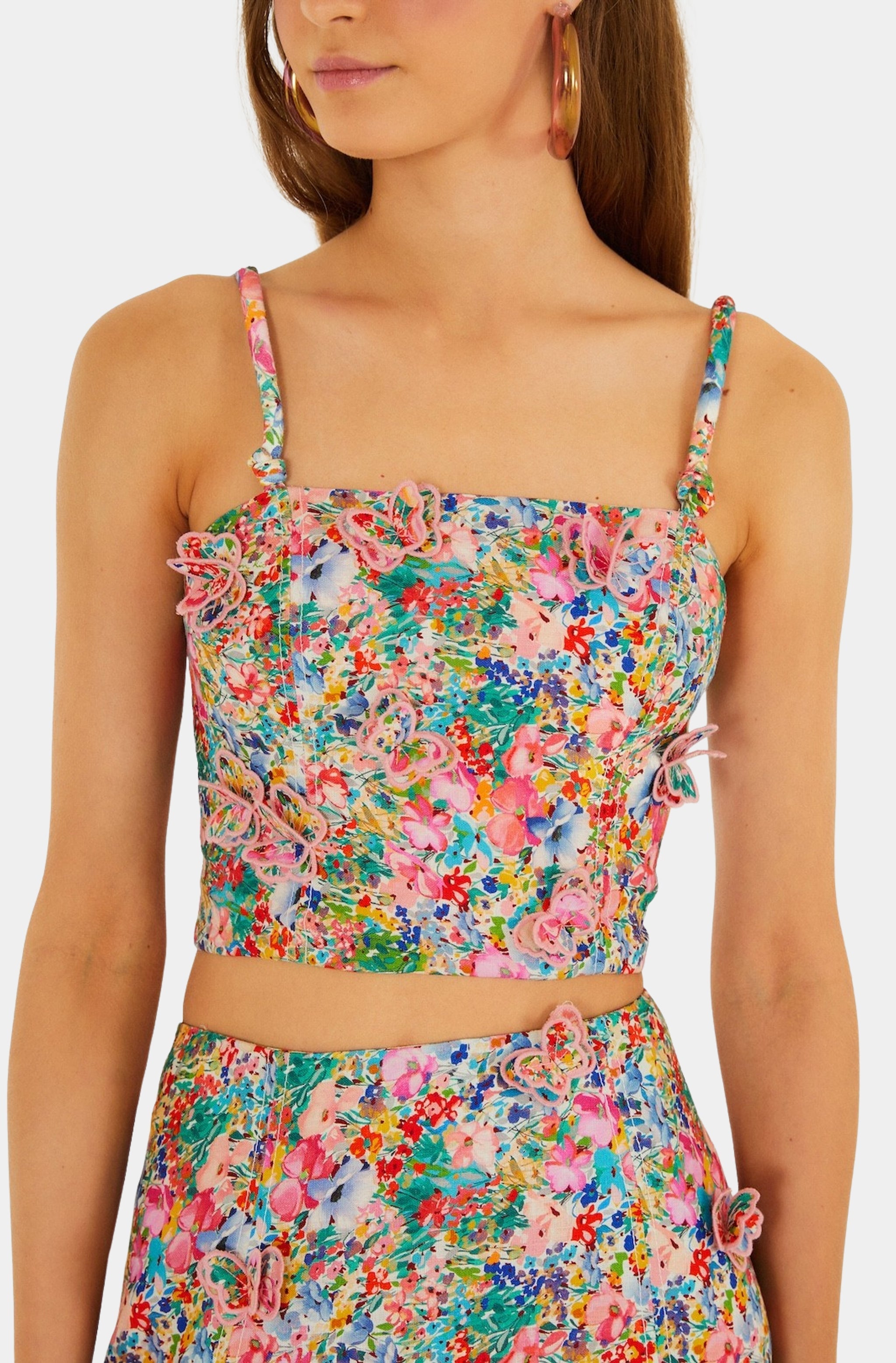 Farm Rio Peasant Floral Off-White Butterflies Top