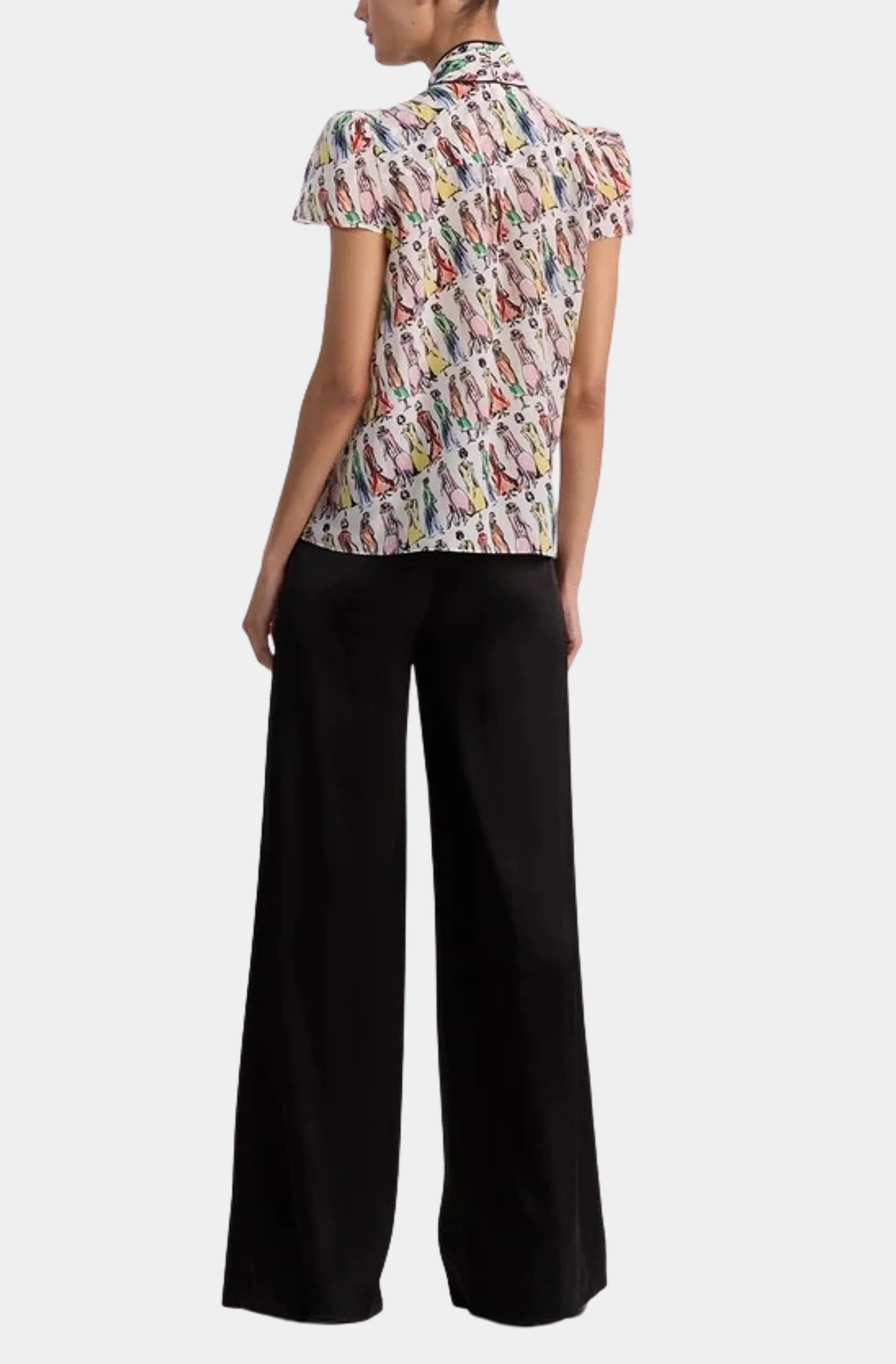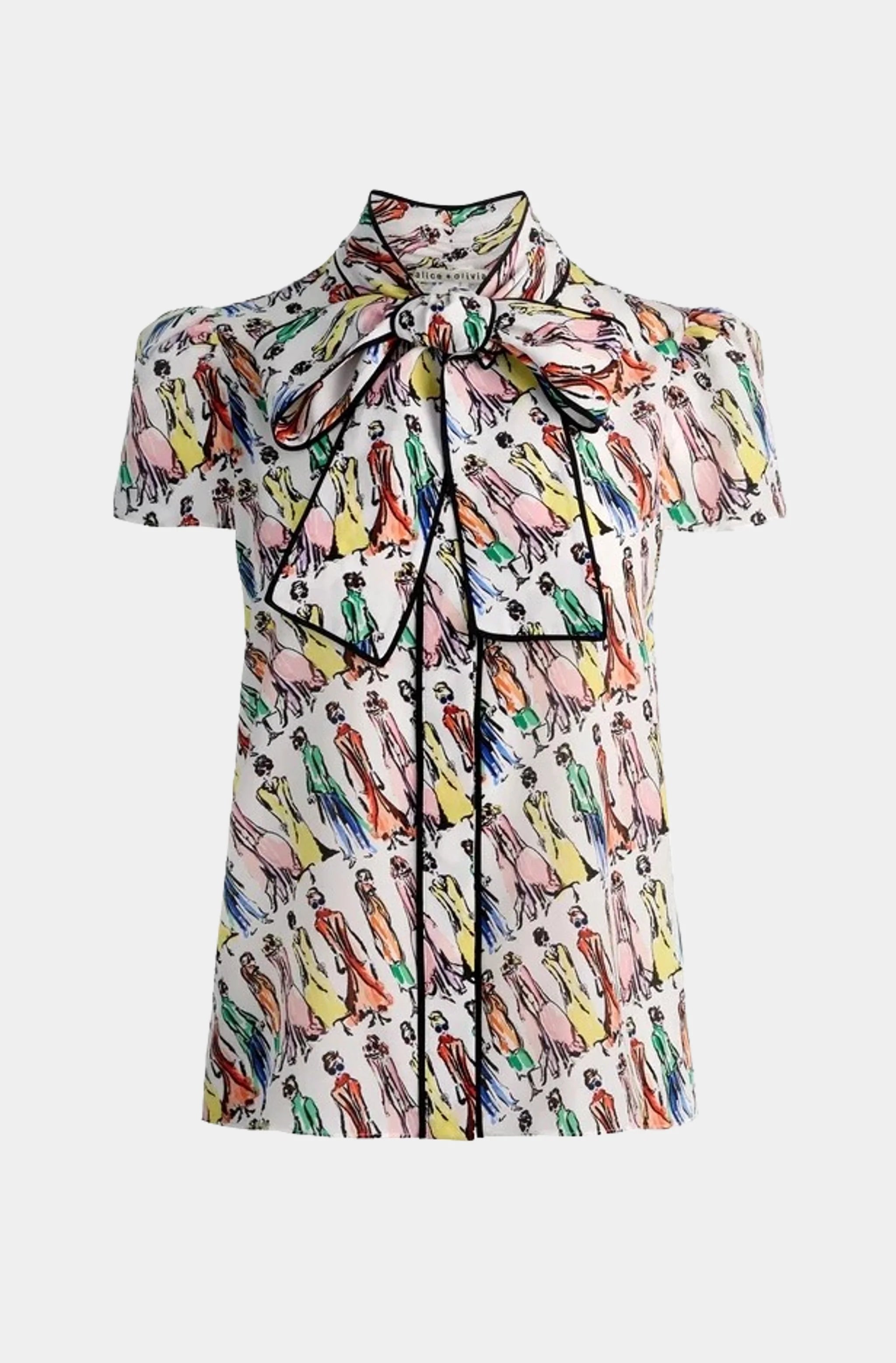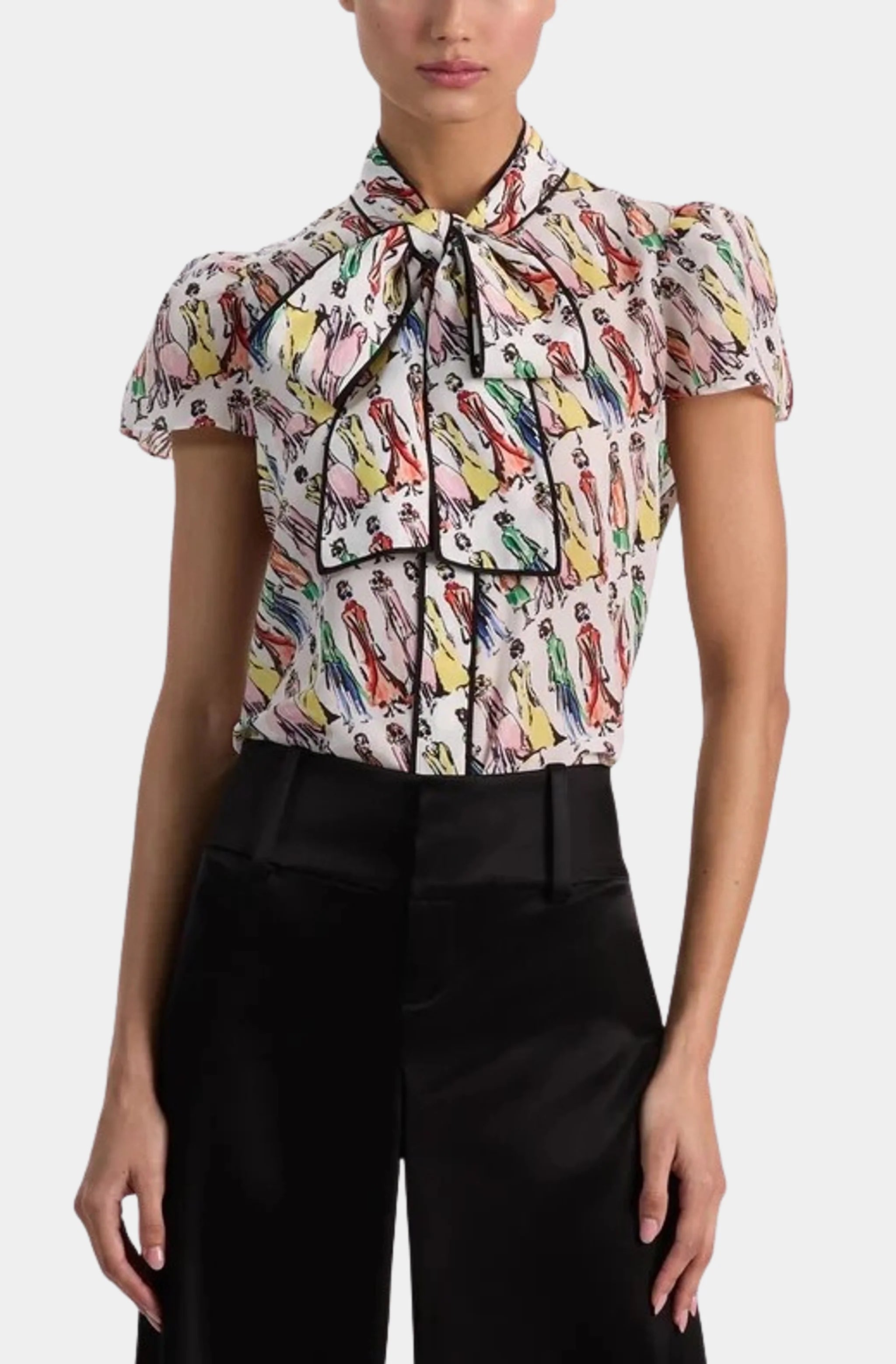 Alice & Olivia Jeannie Staceface Piped Bow Collar Cap Sleeve Button Down