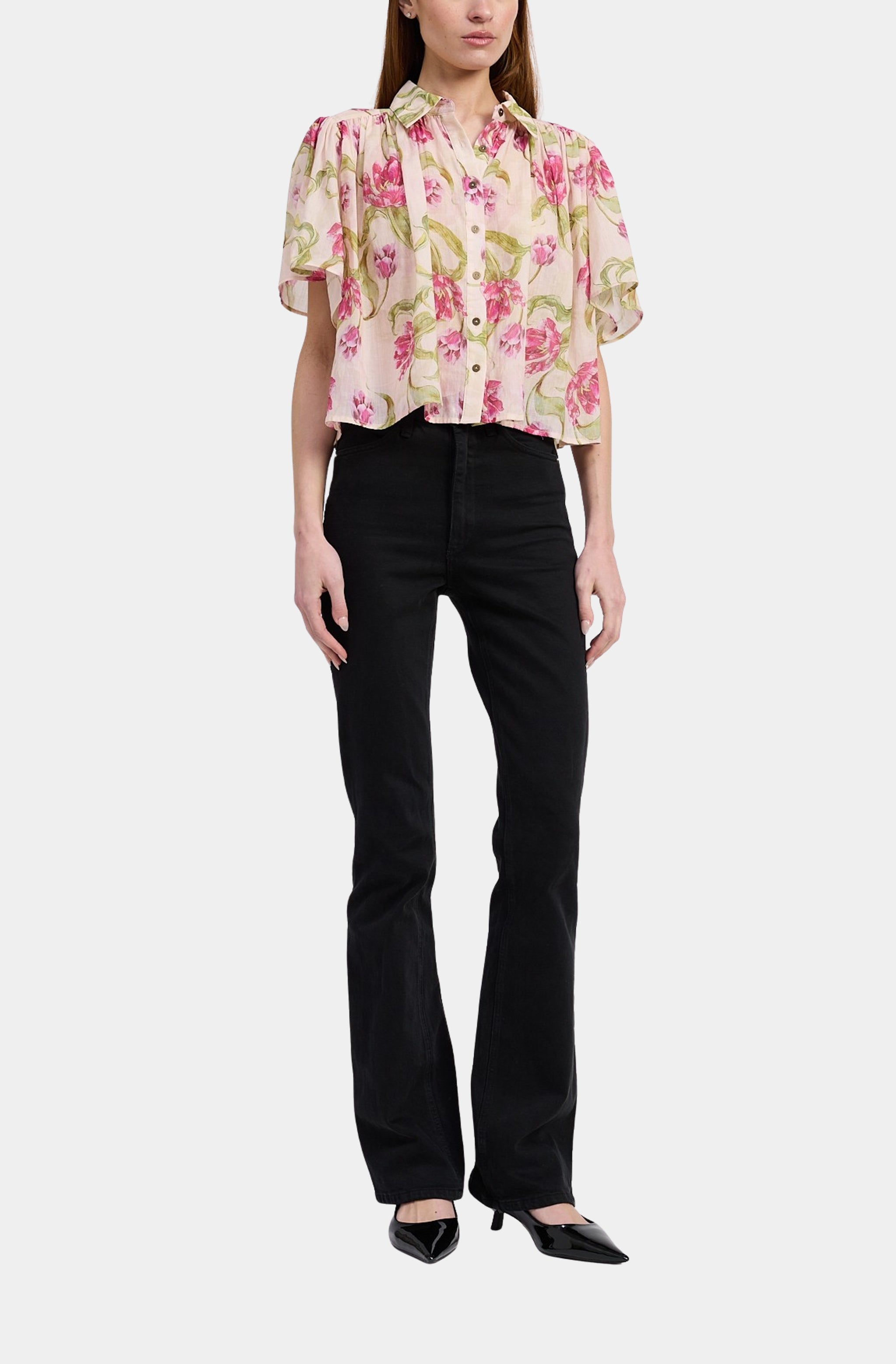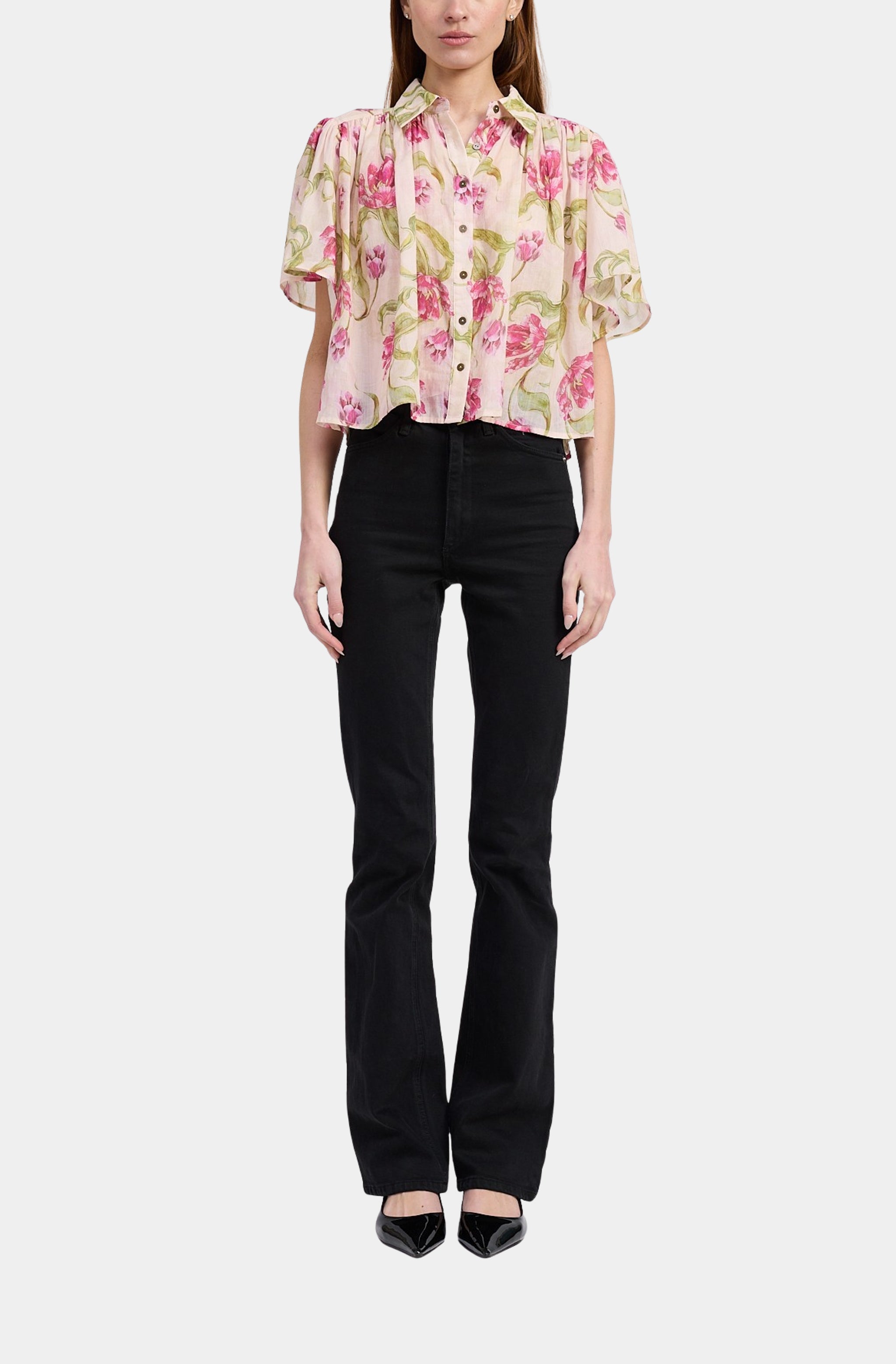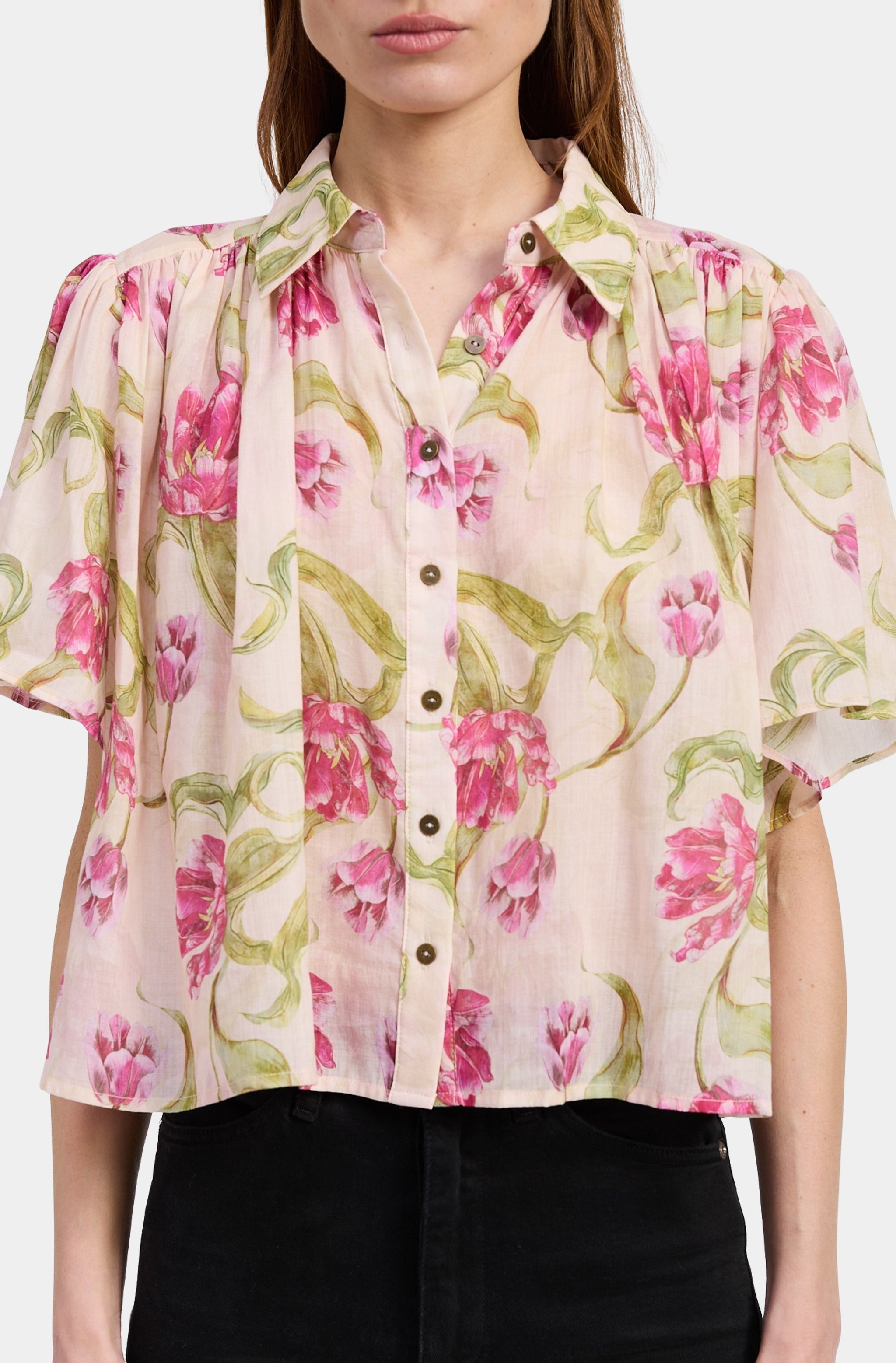 Embrace the beauty of the Lois Top. The short sleeves and button-down design offer a classic look, while the boxy fit ensures comfort and a relaxed silhouette. Crafted for a flowy feel, this floral top effortlessly combines style and ease, making it a must-have for your collection.